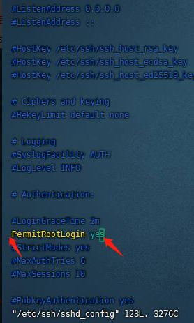 3、输入命令:vi /etc/ssh/sshd_config 编辑root远程权限目录