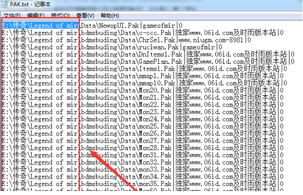 我们先找到登陆器生成器文件夹中的PAK.txt文件,大开后可以看到补丁读取的路径,这里直接修改成你的客户端目录