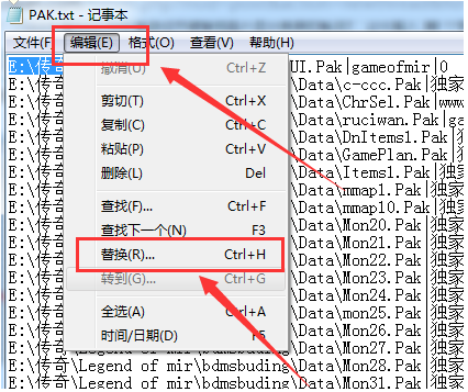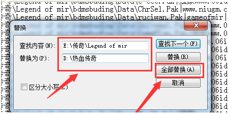 假设我的传奇客户端路径是E:\传奇\Legend of mir,比如你的传奇客户端路径是D:\热血传奇这个目录,直接进行替换,然后保存文件。