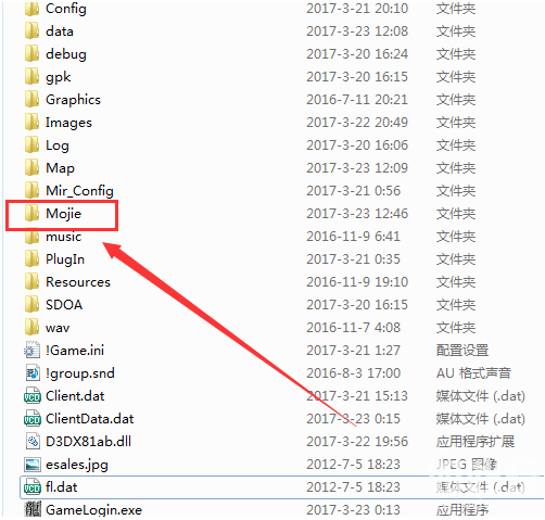 如图中所示,我们的补丁文件是Mojie,在这个文件下面还有data,mpa,Graphics的文件,我们要做的是吧Mojie文件直接解压到传奇客户端中,不需要把Mojie下面的文件夹复制出来到热血传奇客户端中