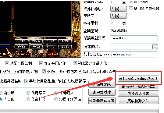 然后我们打开登陆器生成器,然后找到wil,wzl,pak读取规则这个按钮