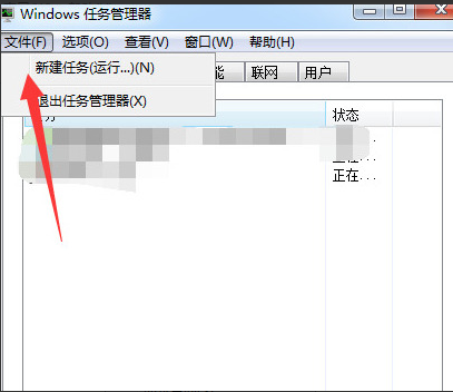 2.进入任务管理器后,点击上面的文件选择新任务,然后在弹出的任务对话框中输入命令explorer.exe点击确定,重启资源管理器操作。