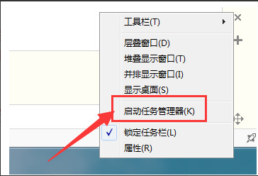 1.单击桌面下方的任务栏空白区域,在弹出的菜单栏中选择任务管理器选项。