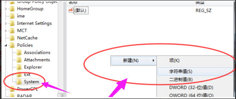 6.选择System项右侧的空白区域新建,新建一个字符串值,并将其命名为DisableTaskMgr,最后双击打开新建的DisableTaskMgr值,将其数据设置修改为0点击确定即可。