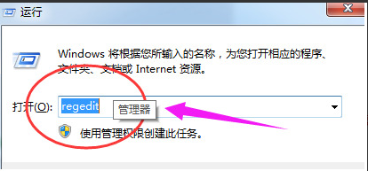 3.回到桌面,打开电脑左下角的菜单,找到操作功能,点击打开,在弹出的运行窗口中输入命令regedit,然后单击确定进入注册表界面。