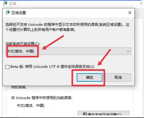 7.最后将"当前系统区域设置"选择为"中文(简体,中国)",随后点击"确定"保存即可。