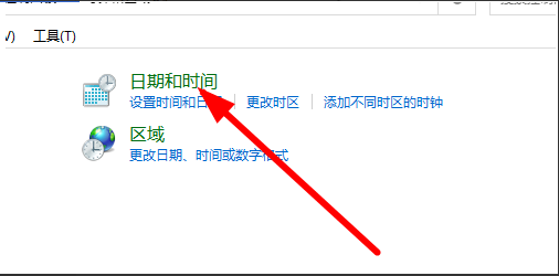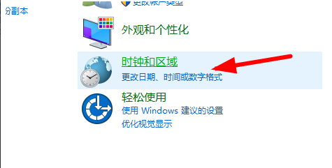 4.打开控制面板,点击其中的"时钟和区域"选项。