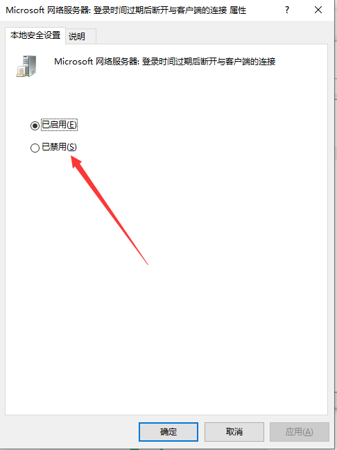 5.打开Microsoft网络服务器:登录时间过期后断开与客户端的连接,将选项改为禁用