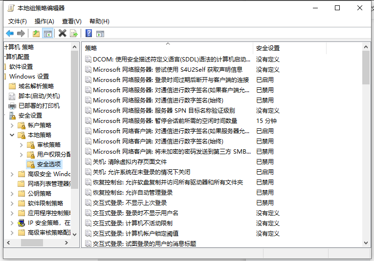 4.设置完后,再依次点开 Windows设置——安全设置——本地策略——安全选项