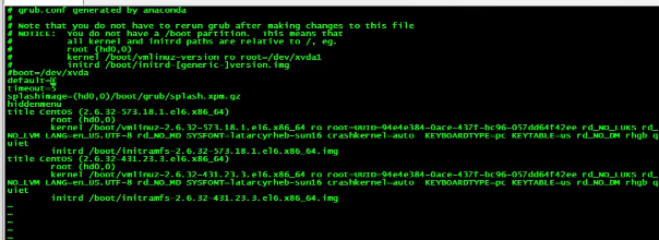 (2) 在 grub.conf 文件中决定开机使用哪个内核版本做启动的参数是 default,默认为 0(代表从最新的内核启动,代表的内核版本从上往下依次是 0,1, 2 等)。