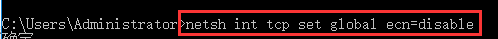 3.输入netsh int tcp set global ecn=disable,按回车即可关闭ECN功能