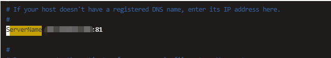 修改 ServerName www.example.com:80 为 ServerName IP地址:80