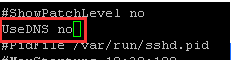 2.按“i”进入插入模式,找到选项UseDNS,修改为UseDNS no