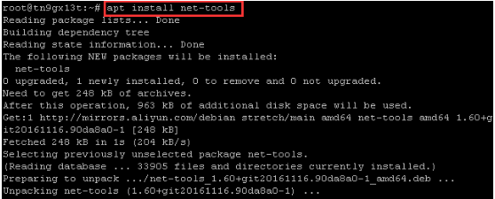 1.输入apt install net-tools按回车键安装工具包