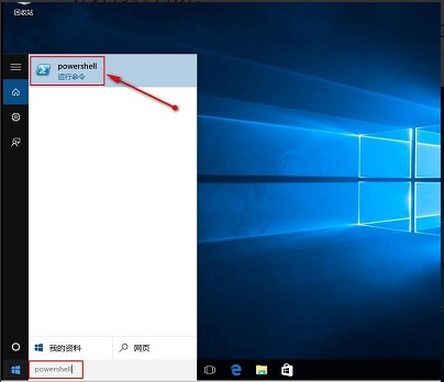 在桌面搜索窗口输入“powershell”命令。