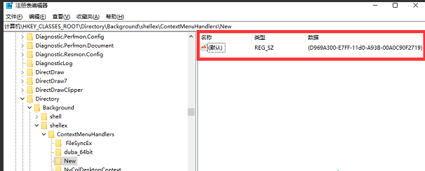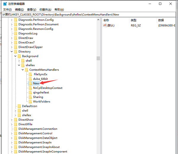 进入到注册表编辑器后,依次点击左侧栏中的“HKEY_CLASES_ROOTDirectoryBackgroundshellexcontextMenundrsNew”