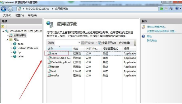 1、在IIS主界面下,点击服务器,展开后找到“应用程序池”,如图