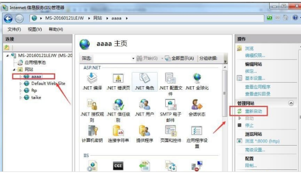 3、最后我们还需要重启下站点,如图: