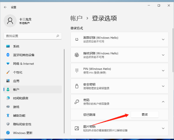 6、在更改密码界面不要输入密码即可关闭登录密码。