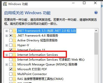 4、从列表中选择Internet Infomation Services。