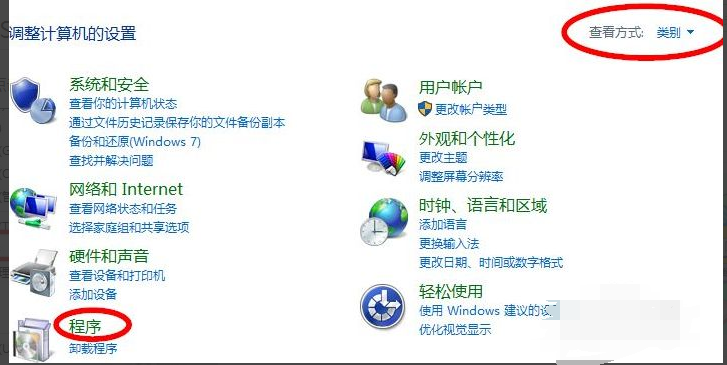 2、接着我们从控制面板选择“程序”。