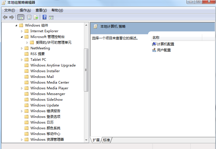 2、依次点击【本地计算机策略】—【用户配置】—【管理模板】—【Windows组件】—【Microsoft管理控制台】—【受限的/虚空的管理单元】—双击【磁盘管理】;