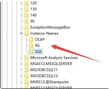 4、接着在注册表按下图的路径找到SQL Server的内容,如下图所示。