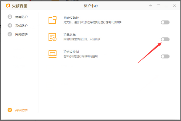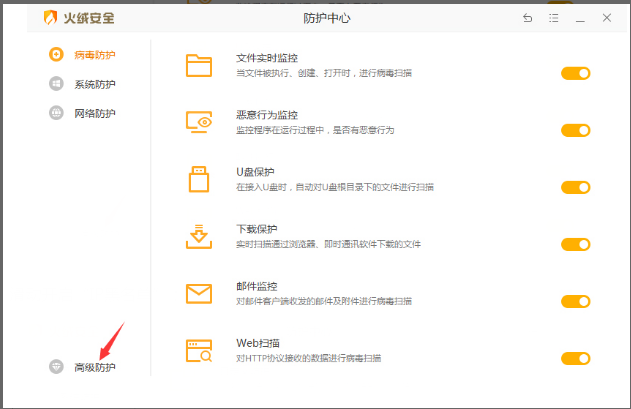 2、点击新窗口左下角的“高级防护”;