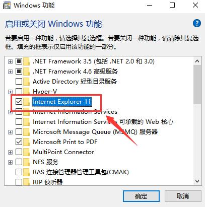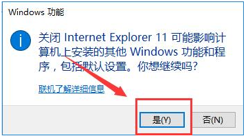 4、在【Windows功能】窗口中找到【Internet Explorer 11】,取消勾选,如图:
