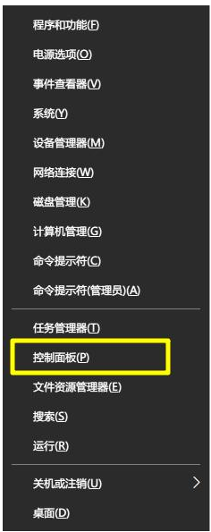 1、按住键盘上的【Win+x】键,选择【控制面板】,如图: