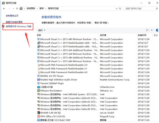 3、在程序页面中点击左侧的【启用或关闭Windows功能】,如图:
