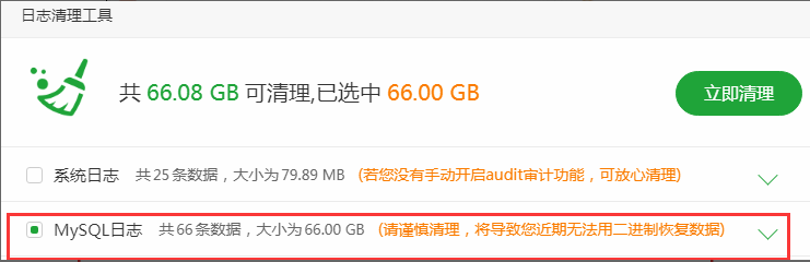 3、 打开日志清理工具执行清理即可;
