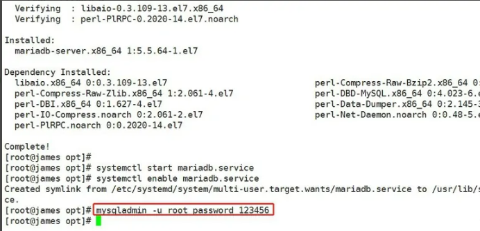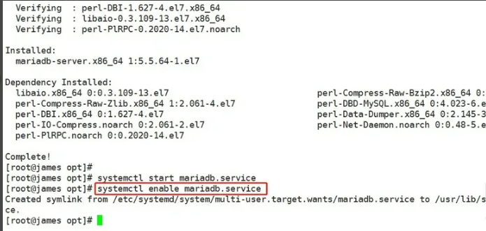 5、执行命令“systemctl enable mariadb.service”添加到开机启动;
