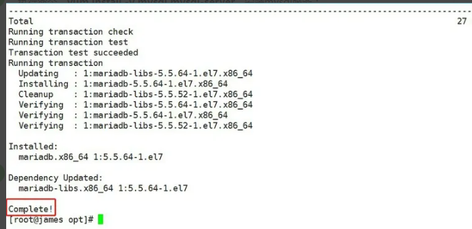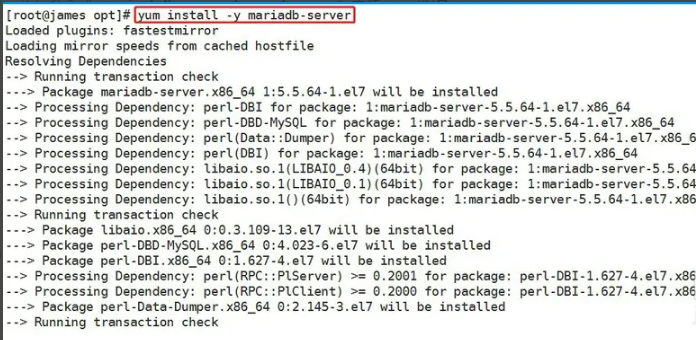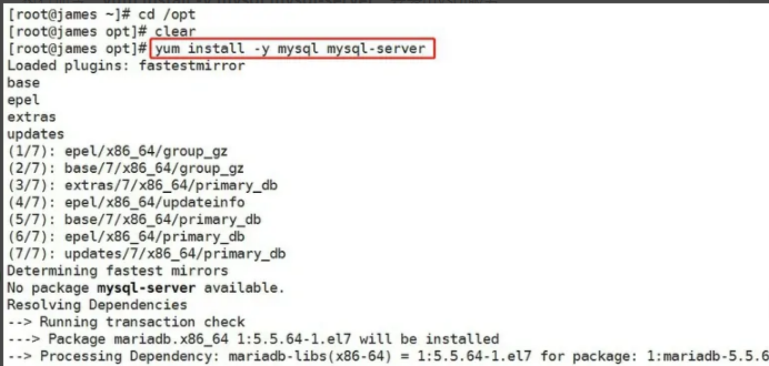 3、执行命令“yum install -y mariadb-server”安装mariadb-server;