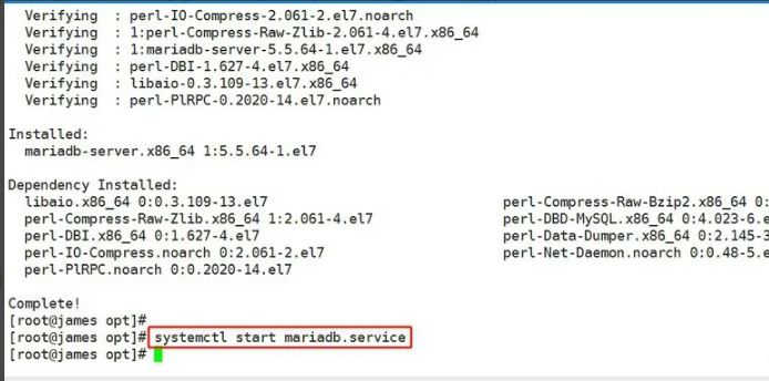 4、执行命令“systemctl start mariadb.service”启动mysql服务;