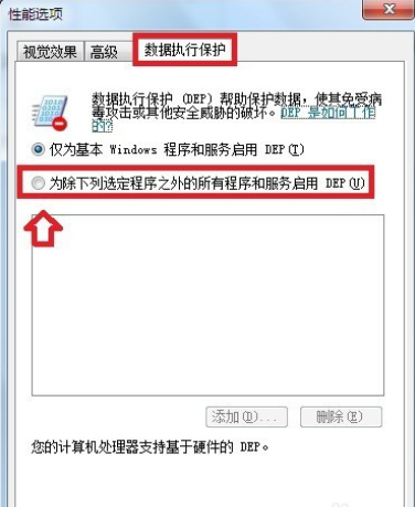 2、设置数据执行保护可以正常打开(勾选下面这个,在选择打不开的程序,就恢复正常)