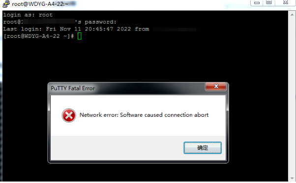 故障描述:服务器正常远程上去以后,马上就会自动断开。