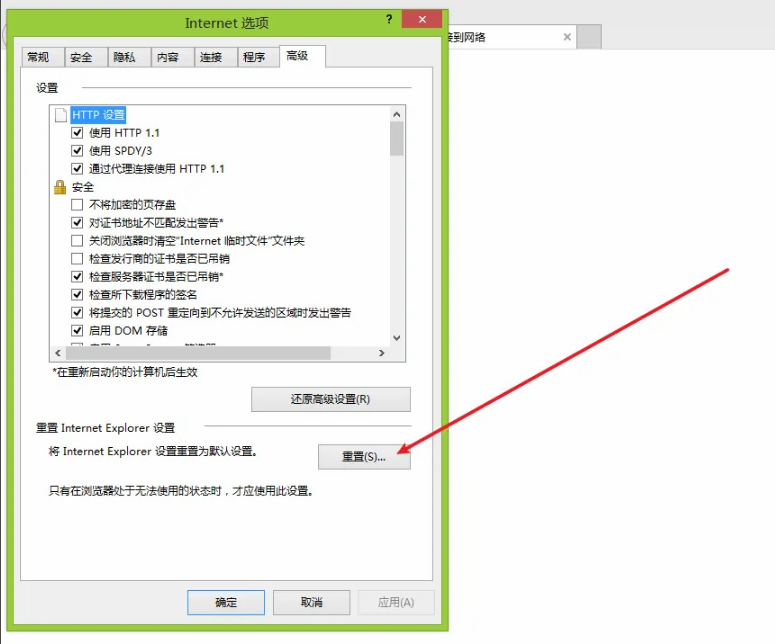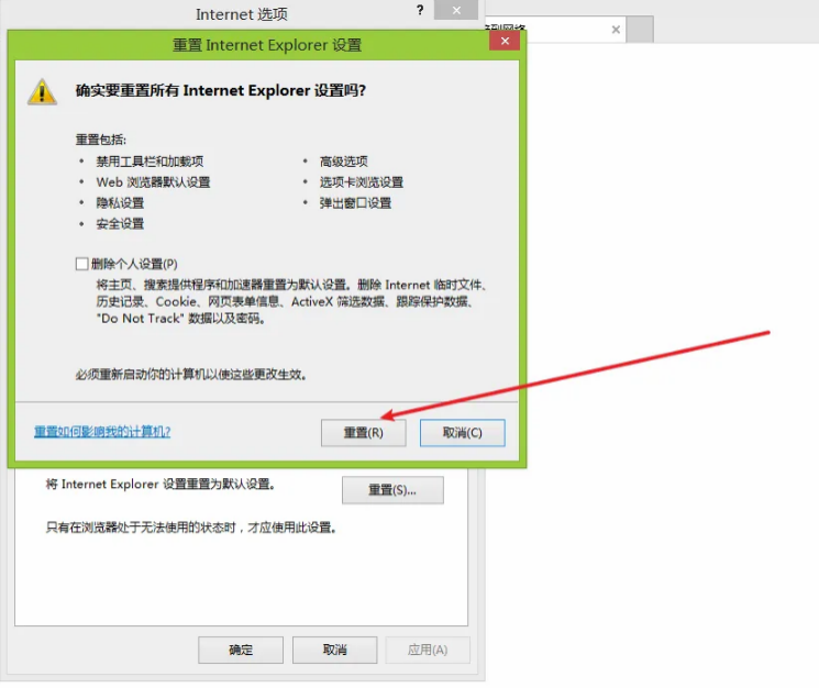5、再次点击 重置,等待重置完成,一般此时就能恢复ie的使用,如果还不行,重启一次电脑即可。