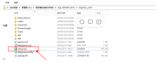 2、打开SQL SERVER 2012 安装程序,找到setup.exe