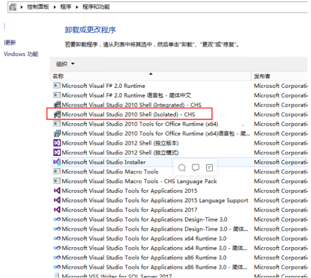 1、卸载Microsoft Visual Studio 2010 Shell(Isolate)-CHS