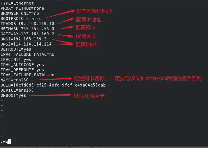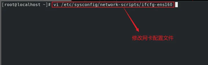 2、然后使用命令"vi /etc/sysconfig/network-scripts/ifcfg-ens160"编辑网卡配置。