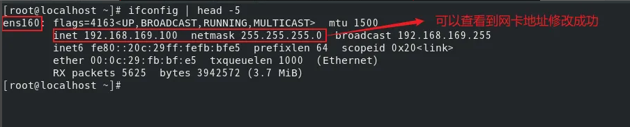 5、网卡文件修改完成以后,最后确认一下地址配置是否生效。