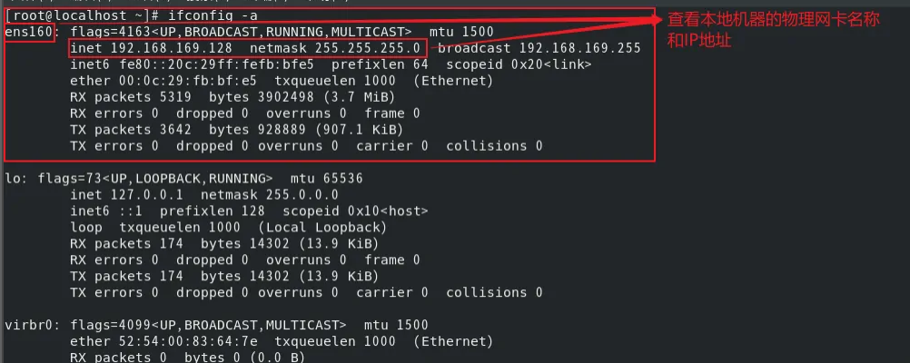 1、首先,我们使用命令"ifconfig"确认一下当前CentOS8系统的地址。