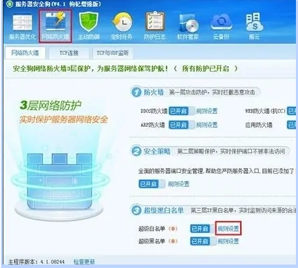 1、打开服务器安全狗,选择“网络防火墙”,点击“规则设置”