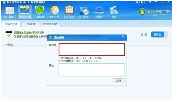 2、在弹出的“允许访问IP段”对话框中,填写IP端后点击应用