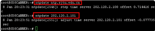 4.使用“ntpdate ntp.sjtu.edu.cn ”和“ntpdate 202.120.2.101”命令,都可以同步NTP服务器时间,并且两个命令代表同一台服务器。