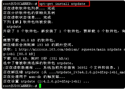 2.使用“apt-get install ntpdate”命令,安装ntpdate软件。如果出现下图所示结果即表示安装成功。