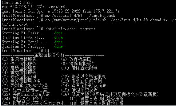 cp /www/server/panel/init.sh /etc/init.d/bt && chmod +x /etc/init.d/bt