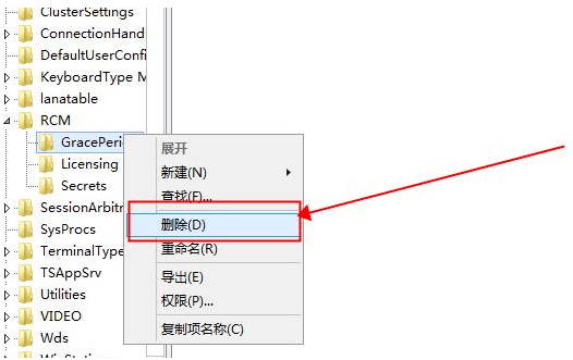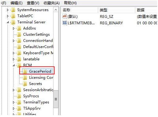 3、依次打开 HKEY_LOCAL_MACHINE\SYSTEM\CurrentControlSet\Control\Terminal Server\RCM\GraceP eriod