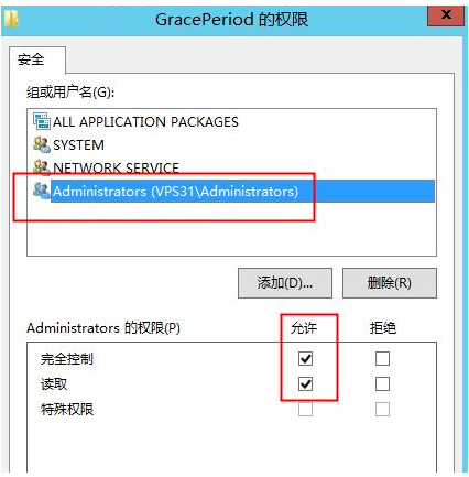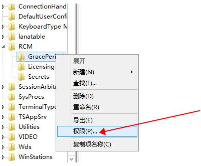 4、删掉注册表中的“GraceP eriod管理权限”右击“GraceP eriod”点击“权限”